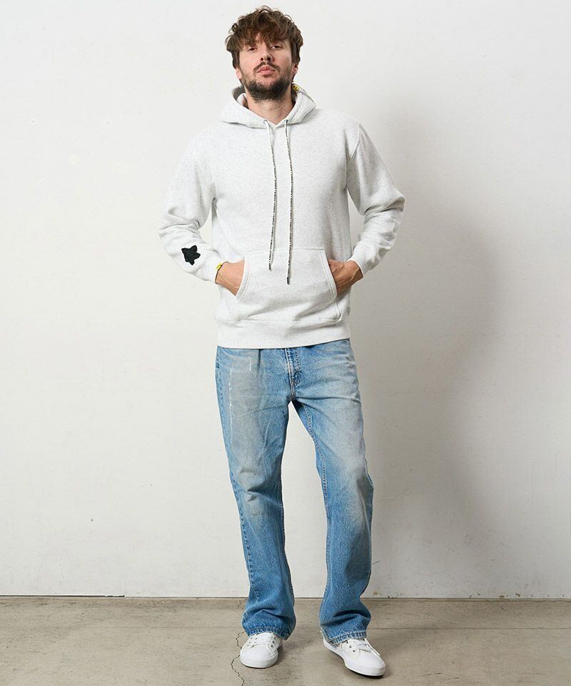 フードには紙幣グラフィックタグ、袖口には手編みの