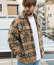 ボリュームある肉厚な風合いのシープボアチェックを使用したGジャンタイプのブルゾン