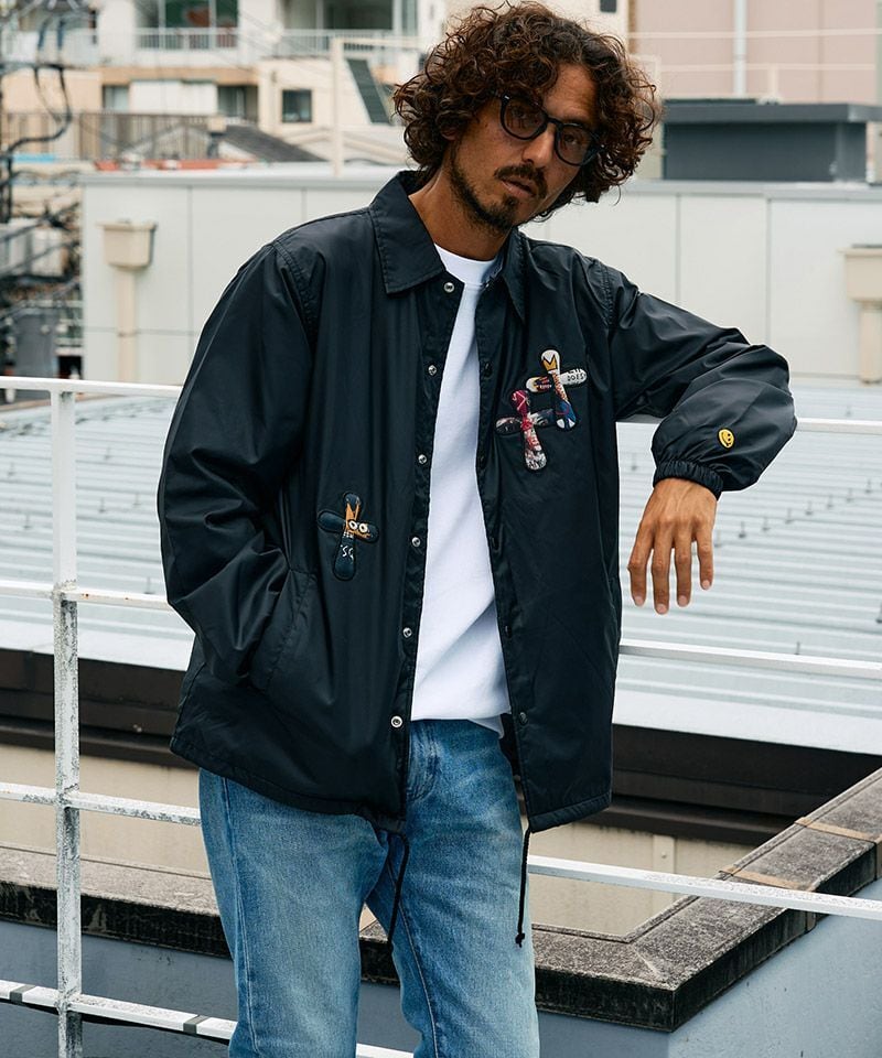 STUD MUFFIN(スタッドマフィン)】ドリップスタークロスパッチ ナイロン コーチジャケット(614-09216)