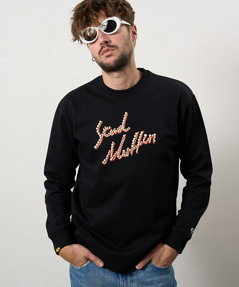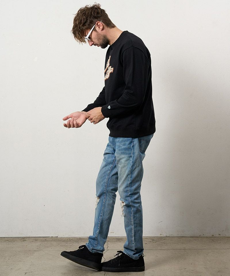ヘビーウエイト裏毛パイル パールロゴ スエットシャツ BK