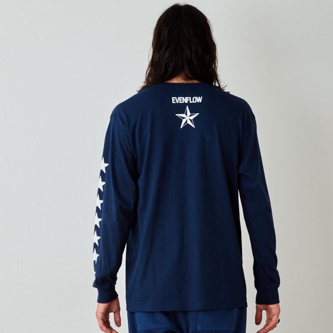 袖とバックにワンポイントのみ単色プリントというシンプルな造り。この計算し尽くされたシンプル具合と配色はEVENFLOWならでは。