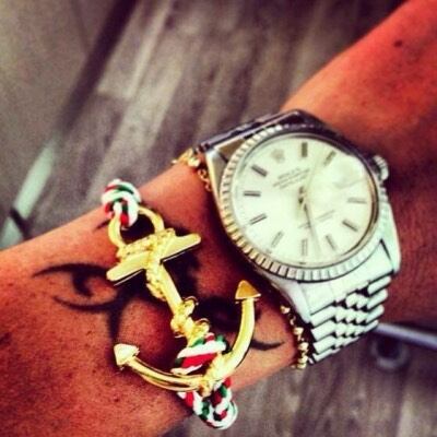 ヒモの部分はポリエステルで作られてるのでビーチなどで使用も可能。アクティブでエレガントなブレスレットです。