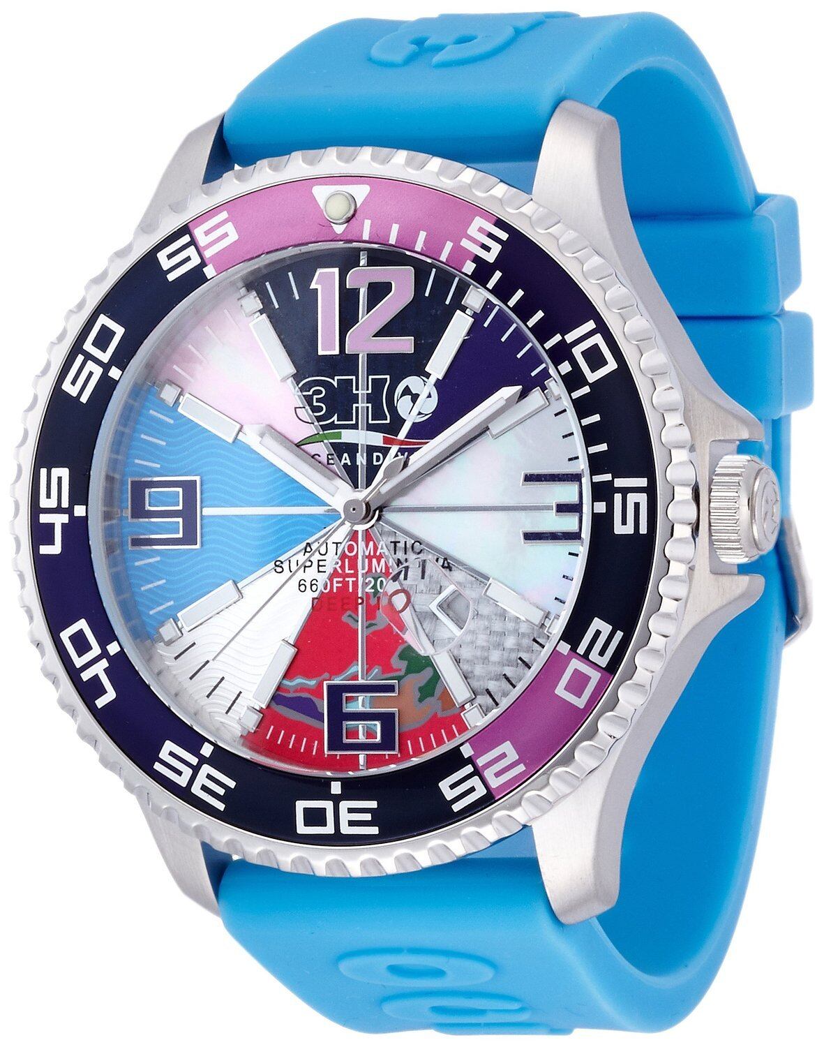 ブランド説明:2005年、イタリア・ローマで設立された「3H(トレ・アッカ)」は、イタリアGTカー選手権の大会スポンサーとしても認知されている、新進気鋭の時計ブランドです。素材にチタニウム、カーボンファイバー、ステンレススチール等を巧みに組み合わせながらイタリアンウオッチらしいビビッドで魅力溢れるカラーリングを実現。ヨーロッパのみならず世界中から注目を集めています。「オーシャンダイバー」シリーズの中でも、特にケースサイズ52mmを超えるシリーズはその大胆でインパクトのあるフォルムがトレンドに敏感な人々の間でも支持を得、アーティストやトップアスリートにも愛用されています。ブランド名である「3H」は、三重水素、またはトリチウムの元素記号です。現在はスーパールミノバが使用されてはいますが、かつて時計の針やポインターに使用されていたイルミネーションを意味し、日々の中で「光」を満たす存在であるという意味を込めてネーミングされました。