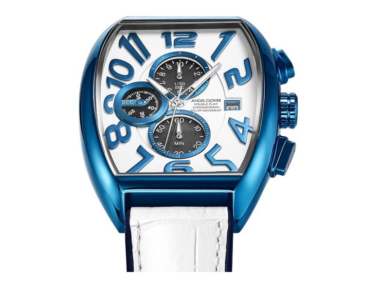 「ダブルプレイ」シリーズは、2009年にブランドを創設し、エンジェルクローバーのロングセラーシリーズです。クオーツ時計だった「ダブルプレイ」シリーズは、トノー型ではきわめて珍しいソーラーモデル「ダブルプレイソーラー」に進化を遂げます。1/20秒単位で測れる高性能クロノグラフを搭載。秒表示は9時位置のディスクが回転しながら秒を刻むという斬新なデザインが魅力。人気の爽やかなブルー×ホワイトカラーで夏に向けて新登場します。