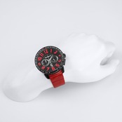 モデル紹介:テンデンスの代名詞ともいえるガリバーラウンドコレクションから、ケースの周りにスワロフスキーをセットした「ガリバーDX」が登場。各カラーにはそれぞれ異なるカラーストーンを一粒配置し、ワンポイントのオシャレさをプラス。カーフレザーのベルトは高級感を与え、スワロフスキーの輝きと合わせて腕元を華やかに印象付けてくれます。人気のクロノグラフにデイト機能も搭載されているので、視認性だけではなく機能性も抜群。テンデンスらしいデザインに華やかさをプラスし、オシャレと遊び心を兼ね備えたウォッチです。