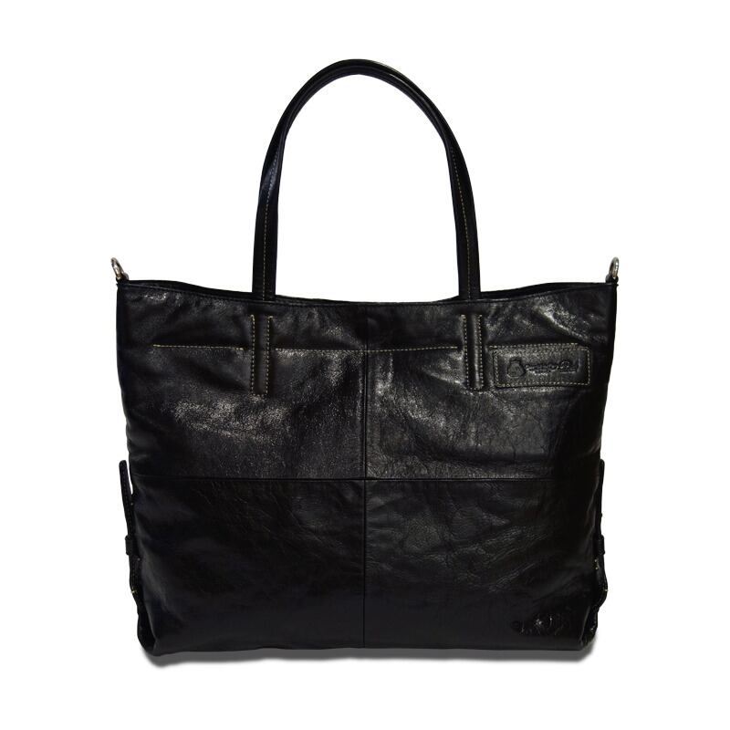 機能的には、肩紐を付け、2way仕様になっております。本体上部にファスナーとマグホックを装備しておりますので、シーンによって使い別けが可能です。内装は財布や手帳などを入れるポケットなどが付いております。