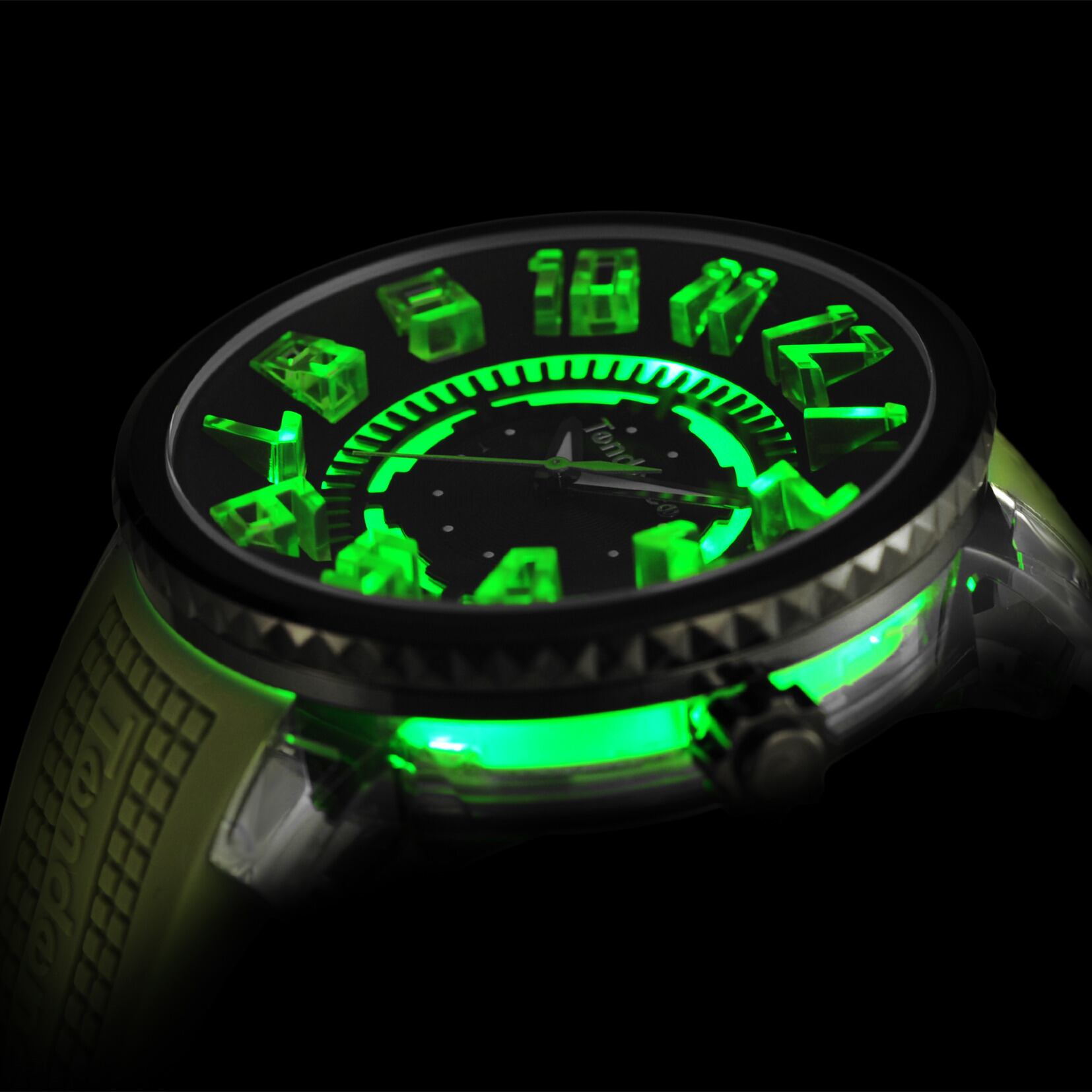 ケース ステンレススチール&ナイテックTR90 ストラップ シリコンストラップ ガラス ミネラルガラス ケースサイズ 50mm 機能 LED搭載(カラーGREEN) ムーヴメント クォーツ(MIYOTA 2033)