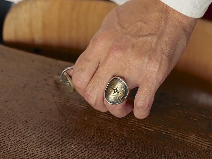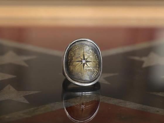 エリザベスコインを使用し中央にダイアモンドを彫り止めした存在感のあるリングになります。