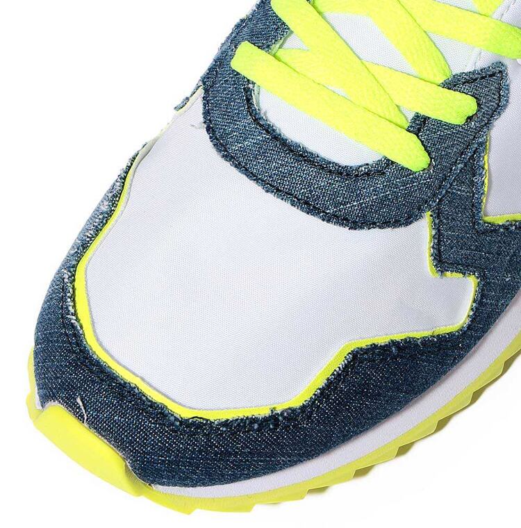こちらのインディゴはネオンカラーとインディゴブルーのコンビネーションでキャッチーでトレンド感のある一足に仕上げております。