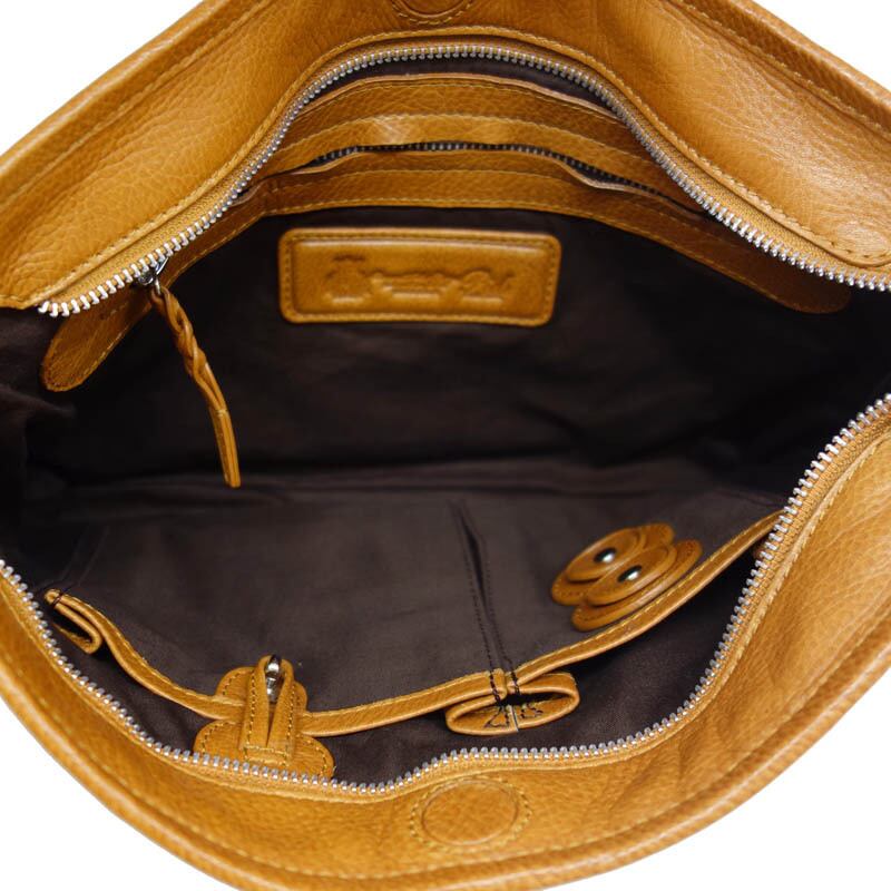 縫製面では縁巻き縫製方法を用いています。表側の革と裏生地を別々に縫製し、最後に天マチを手作業で丹念に革で縁を巻き、ミシンで縫製するという手間の掛かる縫製を施しています。ハンドルにはソフトな芯材を革で包み込み、手間の掛かる返しミシンなどの縫製を行うなど、細部まで作り込んでいます。
