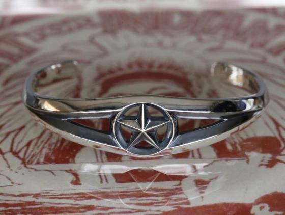 バングル裏にはブランド刻印や925刻印の他にスター刻印が所狭しと打ち込まれエンドには真鍮製のスターが施される。