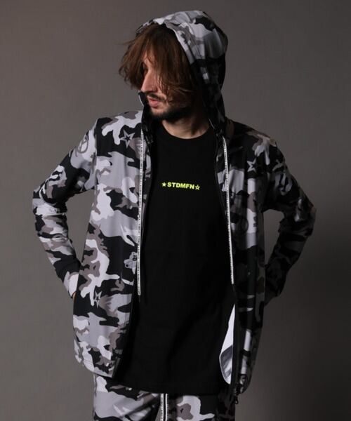ストレッチナイロンカモフラージュモチーフ柄ジップパーカー
