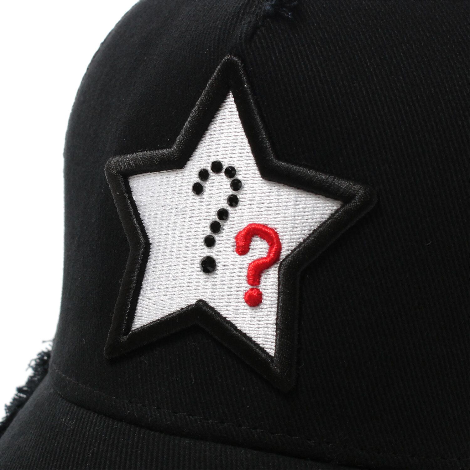 【StarLean★】のキャップはオリジナルで被りやすい作りでロゴのバリエーションの多さ、細かい刺繍やダメージ加工、スワロフスキーにこだわりがあります。サイズも後部のアジャスター調節で男女問わず愛用できます。「ダブルクエッション」スワロフスキーと刺繍を組み合わせたデザインとなっております。