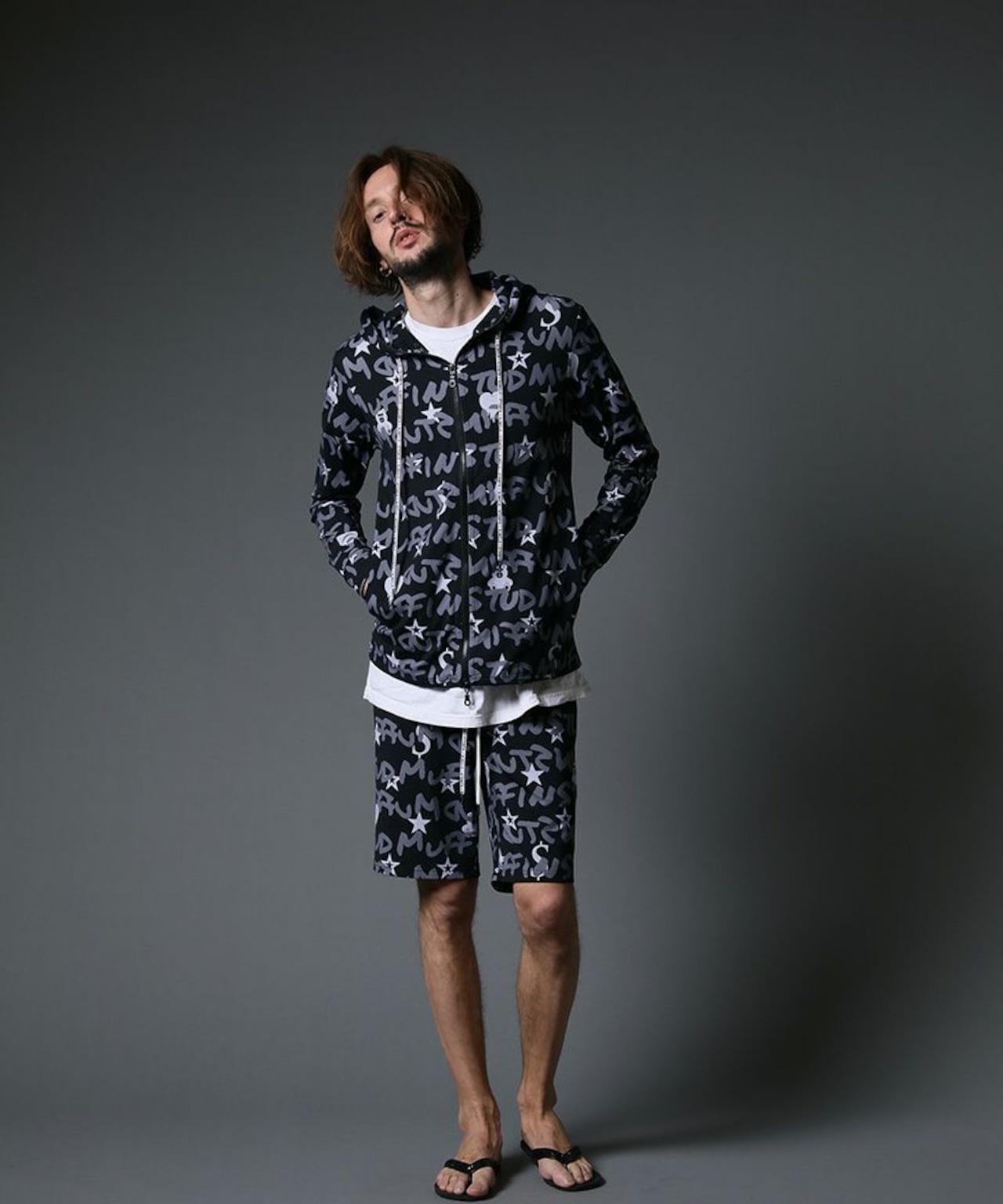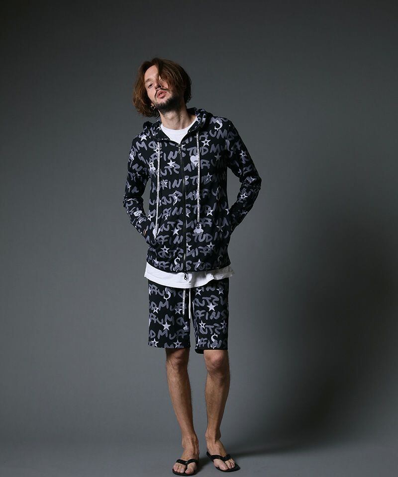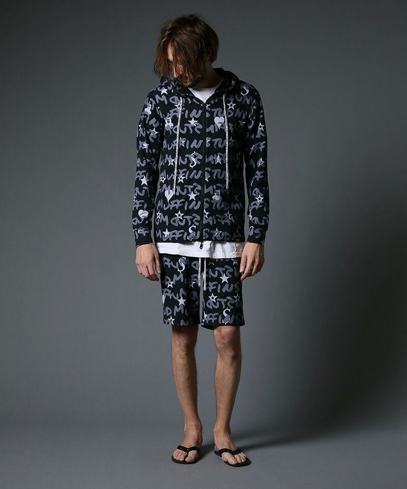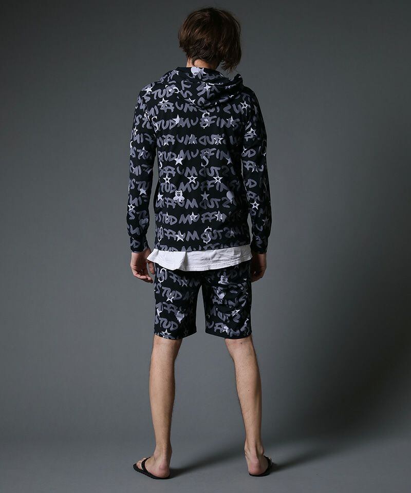 SALE‼︎ 42% OFF‼︎ セットアップ STUD MUFFIN(スタッドマフィン)】GRAFGRAM柄ナイロンストレッチ ラッシュパセットアップ ブラック