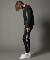 TRストレッチポンチ エンボス スターグラム ラインリブパンツ(224-06239)