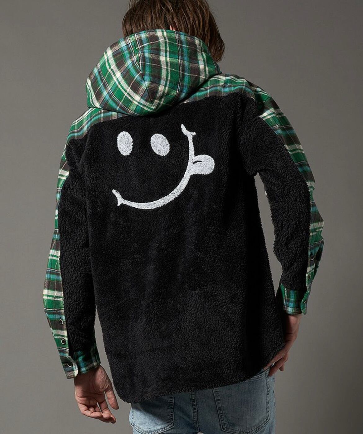ヘビーネルチェック-ボア サガラ刺繍 フーデッドシャツ(224-01132) グリーン
