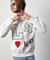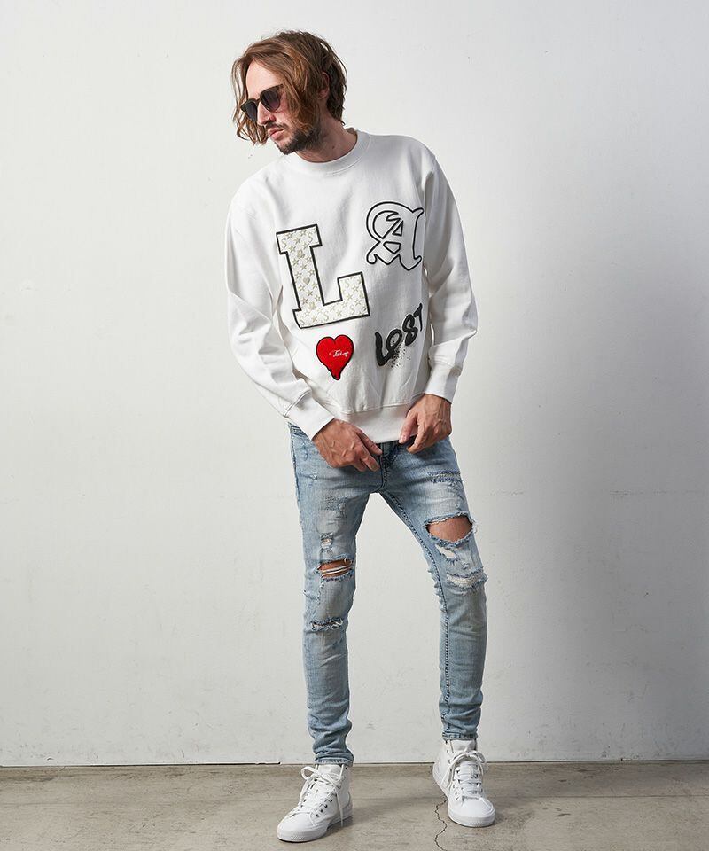 【STUD MUFFIN(スタッドマフィン) 12ozヘビーウエイト裏毛起毛 LAフォームプリント-サガラパッチスエットシャツ(314-02543) ホワイト