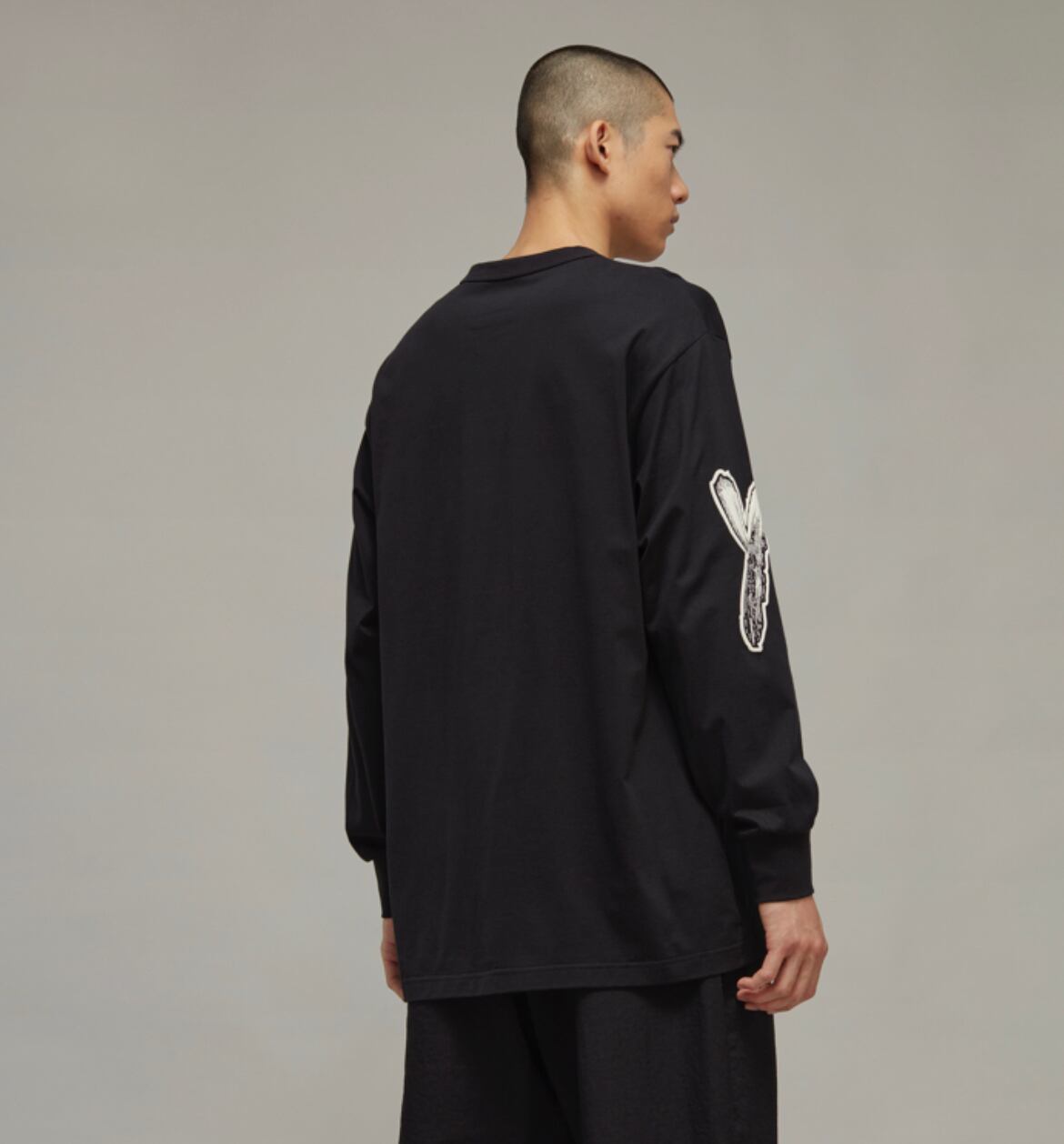 ブラッシュストロークグラフィックを施したY-3のロングスリーブTシャツ。