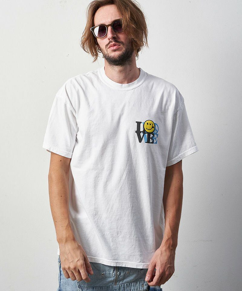 STUD MUFFIN(スタッドマフィン)】6ozピグメントダイコットン天竺アーススマイリー-サガラパッチ SSTシャツ(314-02560)