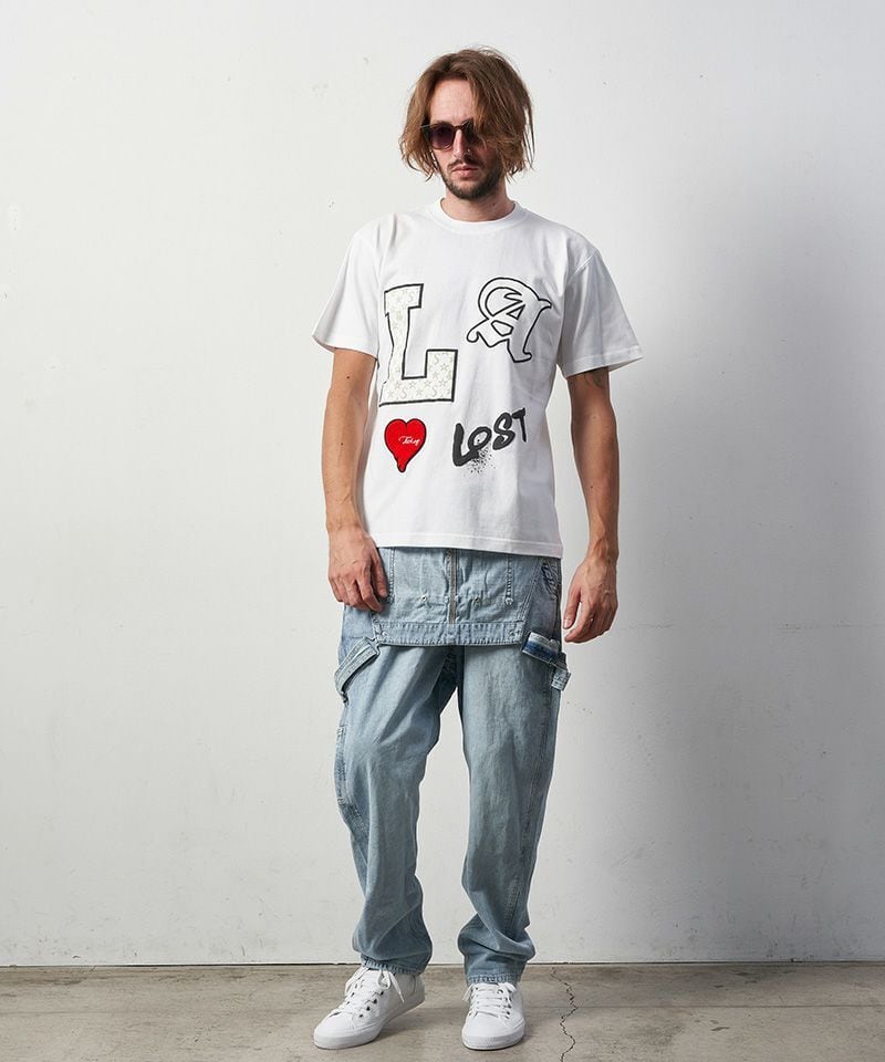 STUD MUFFIN(スタッドマフィン)】【5.6ozコットン天竺LAフォームプリント-サガラパッチSSTシャツ(314-02573) ホワイト