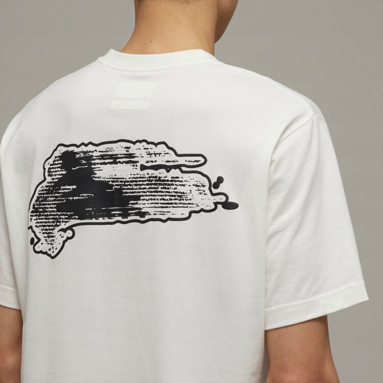 ブラッシュストロークグラフィックを施したY-3のショートスリーブTシャツ、ルーズフィット、コットン100%(シングルジャージー)、 ブラッシュストロークグラフィックY-3ロゴ 。