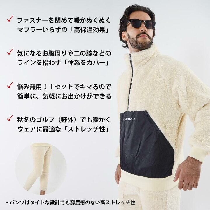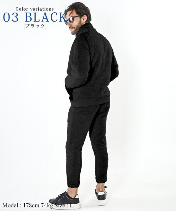 ARMYRICH アーミーリッチ ボアセットアップ もこもこ メンズ ルームウェア 部屋着 男性 フリース 暖かい 上下セット カジュアル ブラック